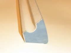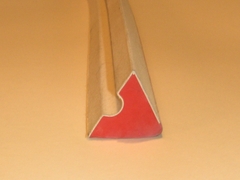 Les bandes en caoutchouc sont collées sur une réglette en bois.